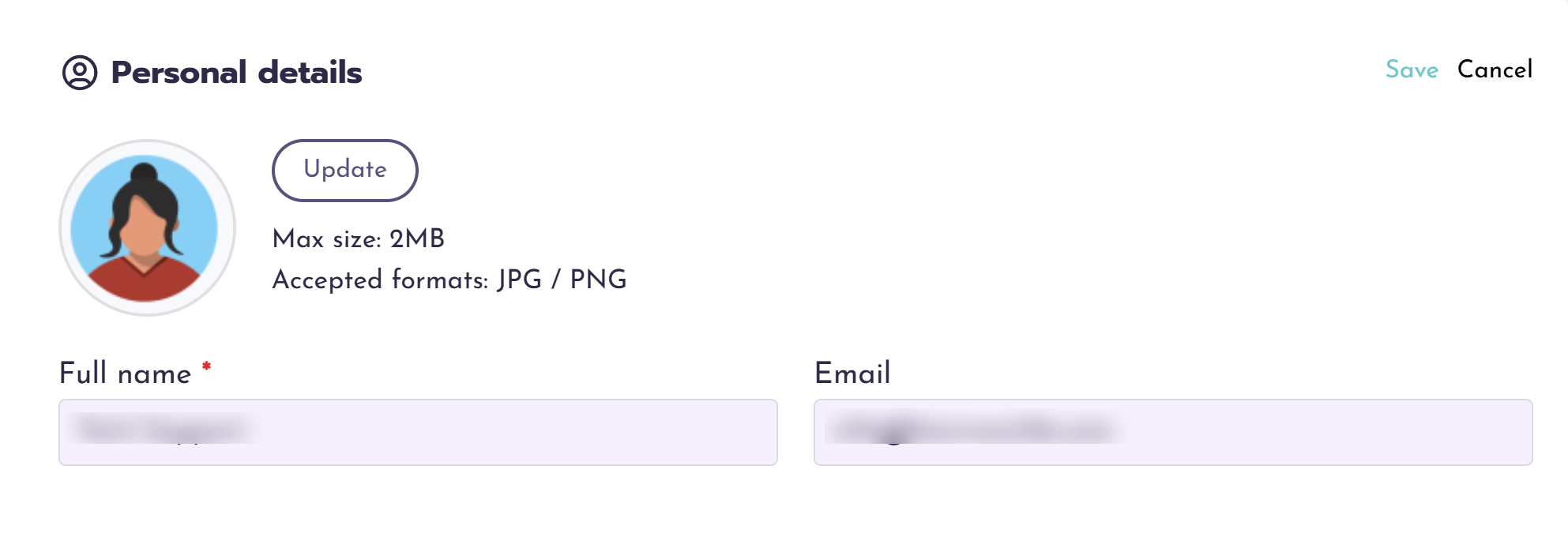 In the Personal Information section of the Account page, users can view and update details such as their avatar, name, and email address. To make changes, click on the Edit button.