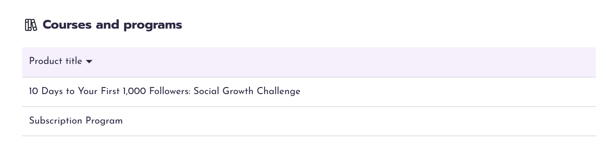 This area displays all the courses and programs a user is enrolled in. By clicking on each product, users are redirected to the course player.