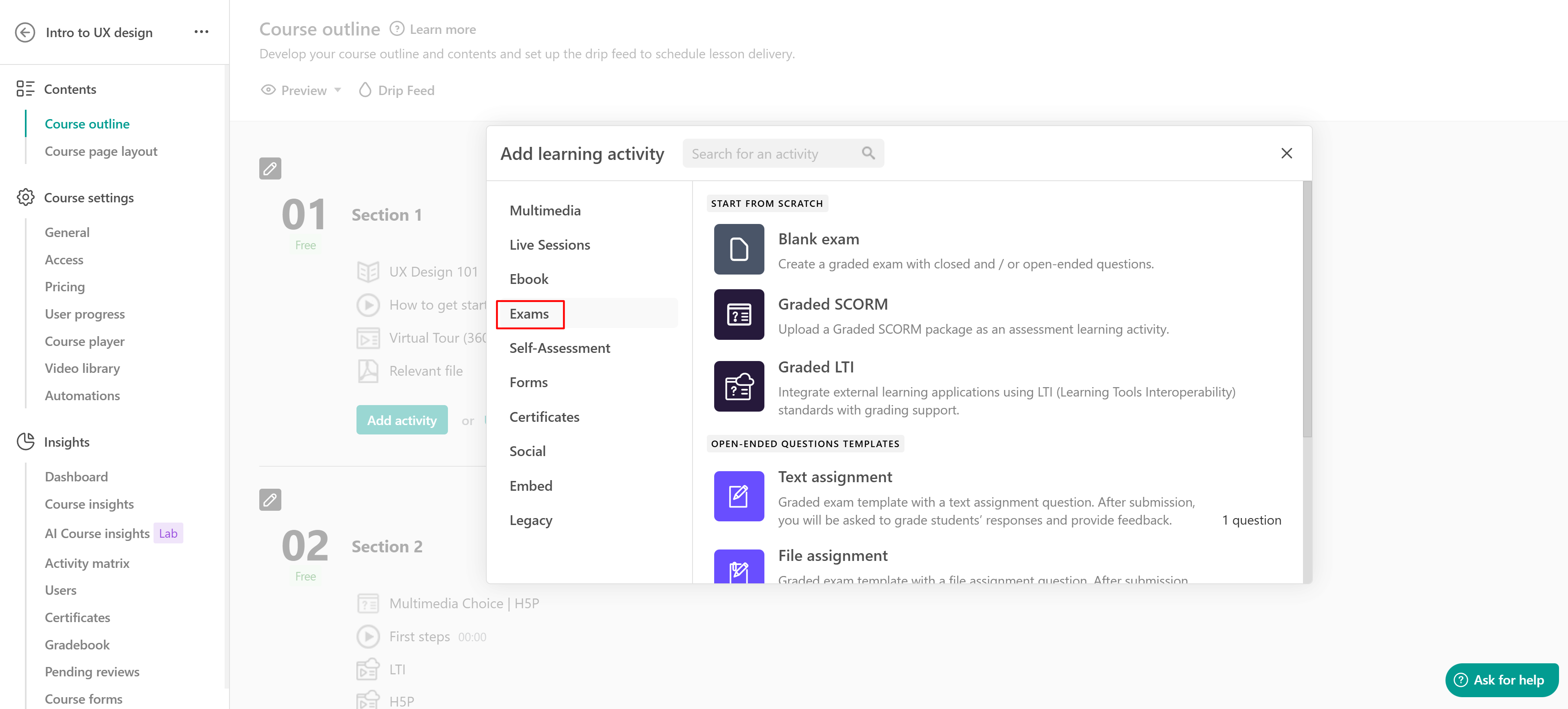 In this article, you'll find a detailed, step-by-step walkthrough on creating exams (graded assessments).