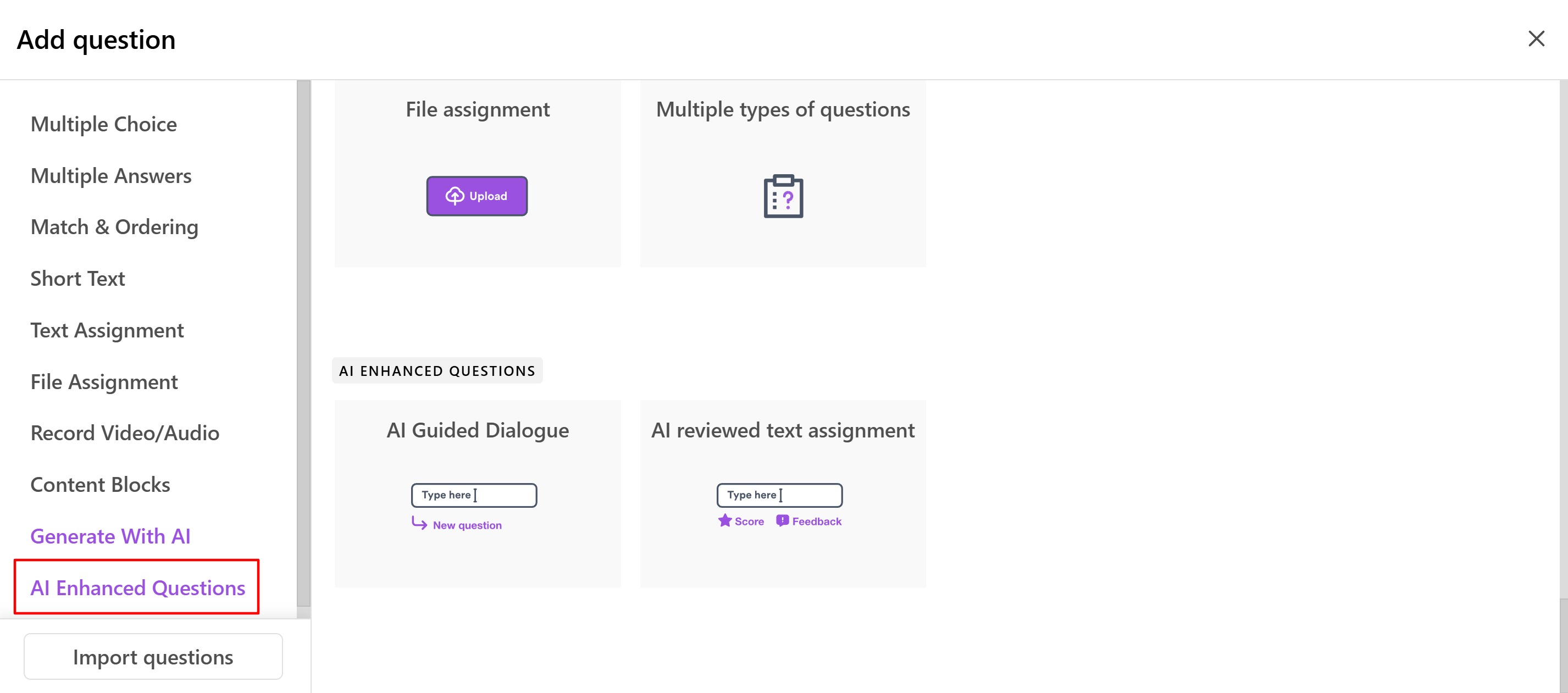 Another option is to use the AI-reviewed text assignment question.
