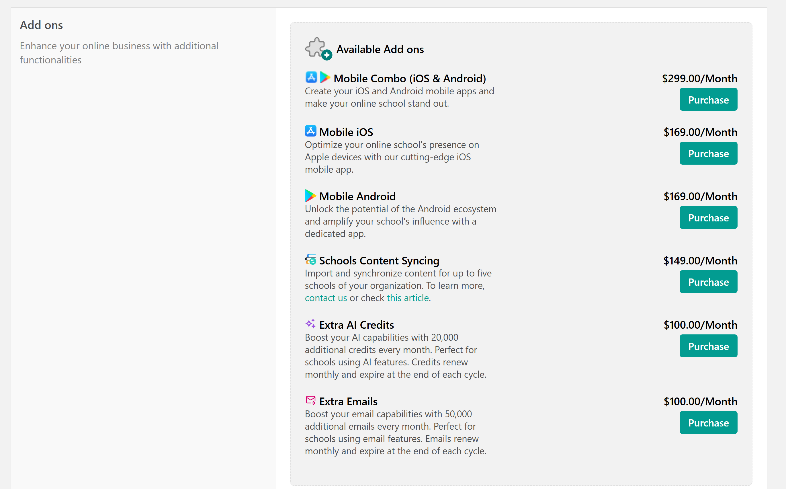 These credits automatically renew at the start of each billing period, in line with your school’s subscription cycle. The add-on also follows your base subscription’s billing schedule.